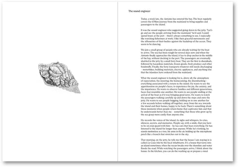 La Casa Isla is an intricate layered work of documentary and fiction by artist Anne Golaz. It is informed by time spent on the island off the coast of Chile that was the inspiration for the place Robinson Crusoe was shipwrecked, which Golaz visited with Stéphane Goël during the production of his 2018 documentary film Insulaire. In this immersive artist’s book, the island is explored as a transitory space of hope and refuge and conversely of isolation and imprisonment. An evocative sequence of image and text places these ideas in contrast as well as resonance. In passages of prose and poetry, the island is laden with promises of solace and transformation, as Golaz’s narrator considers distance, memory, and mortality. Photographs, watercolour illustrations, and pages from the artist’s sketchbook punctuate the narrative, creating a textured and equivocal visual language. Beginning from close, sensory study of a particular place, La Casa Isla grows to form a transcendent meditation on exile and grief, the influence of cinema, and the nature and purpose of art and narrative.